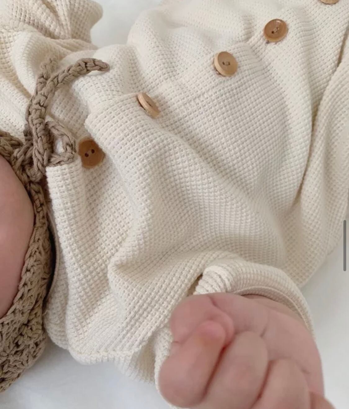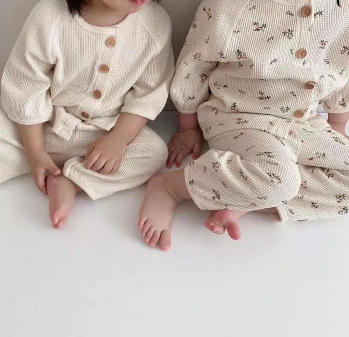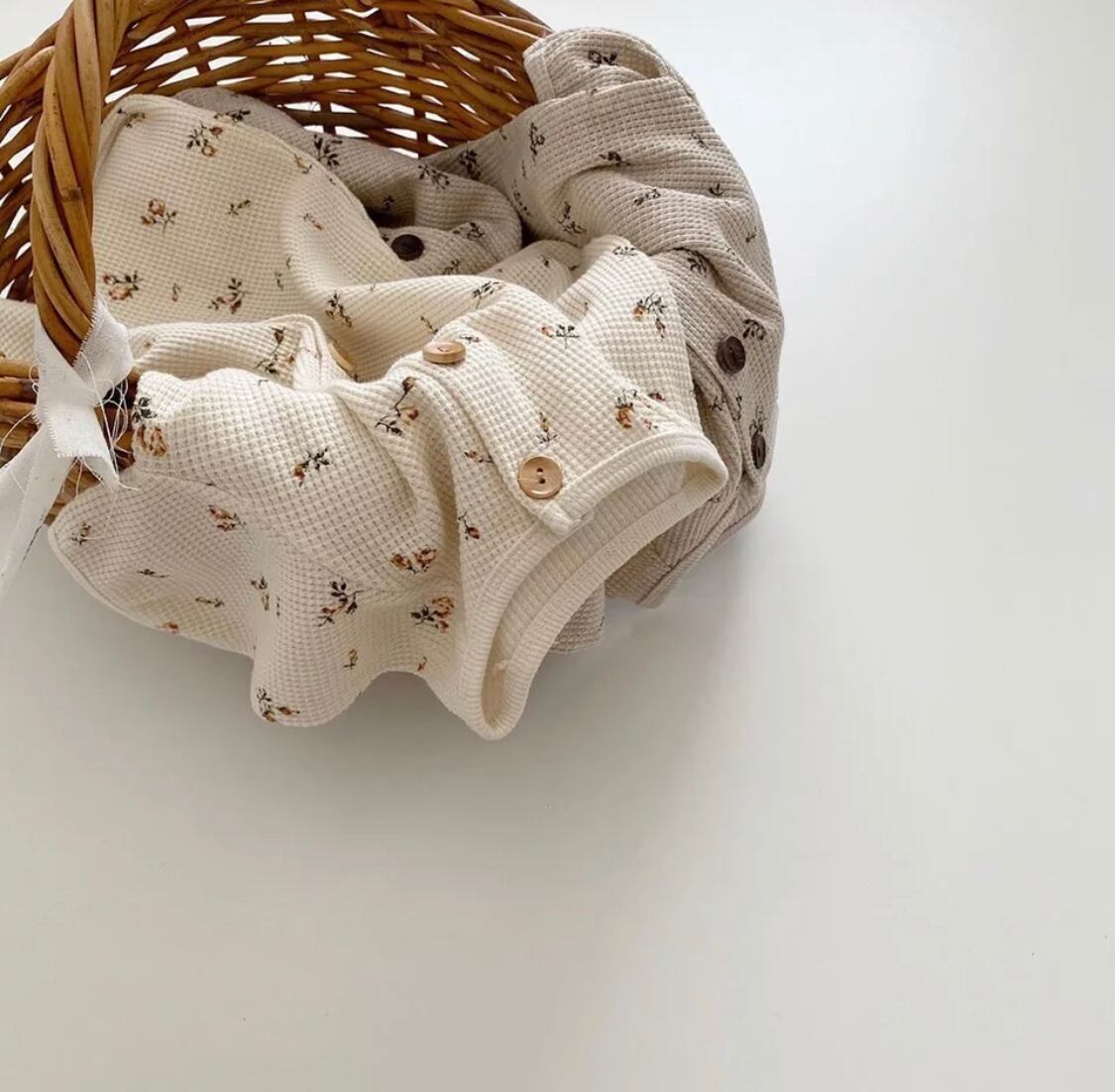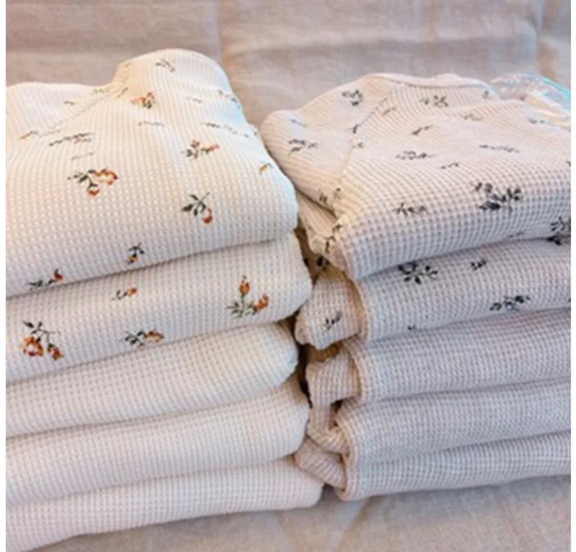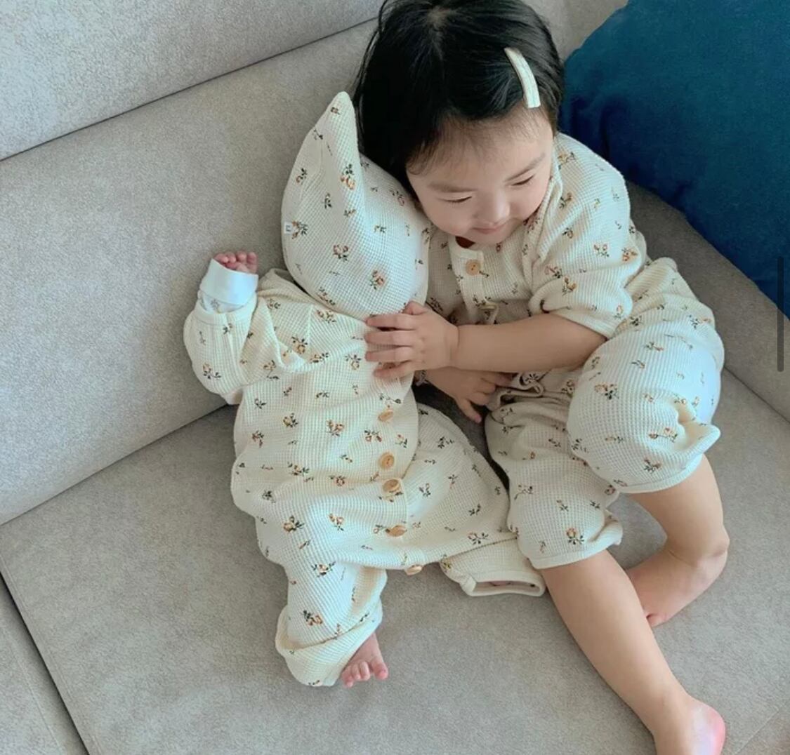 風合いのいいワッフル生地のロンパース◎